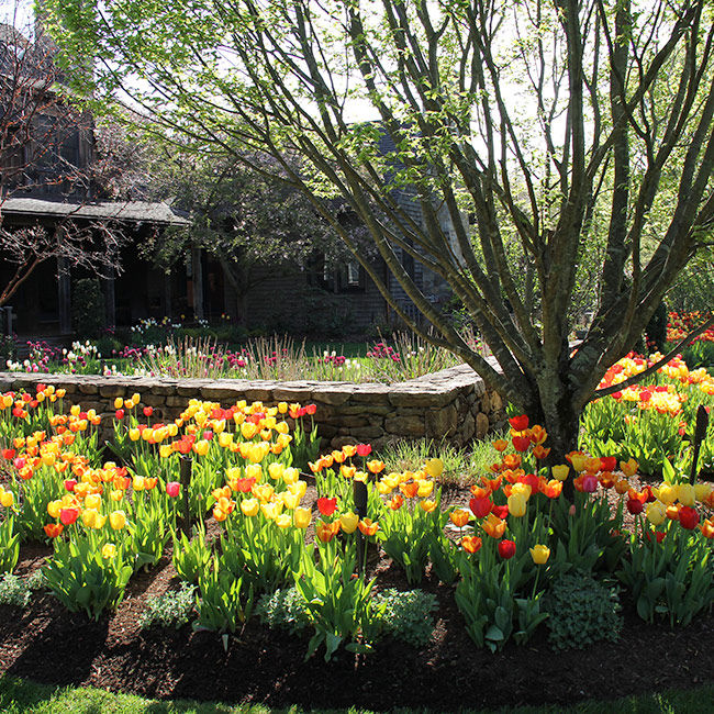 In spring, vibrant blooming tulips, daffodils, and other bulbs deliver an explosion of color throughout the landscape.